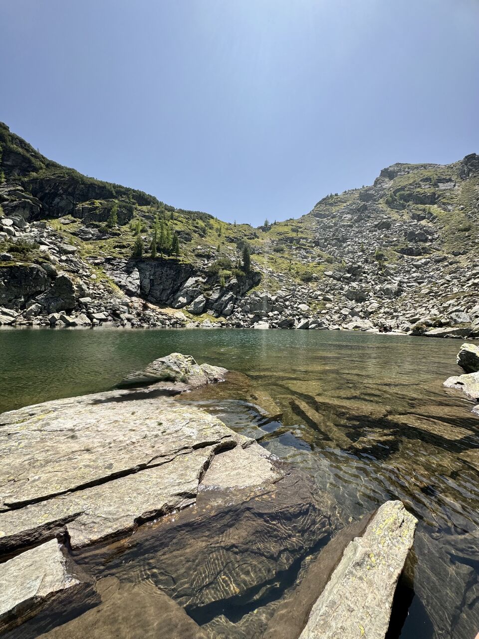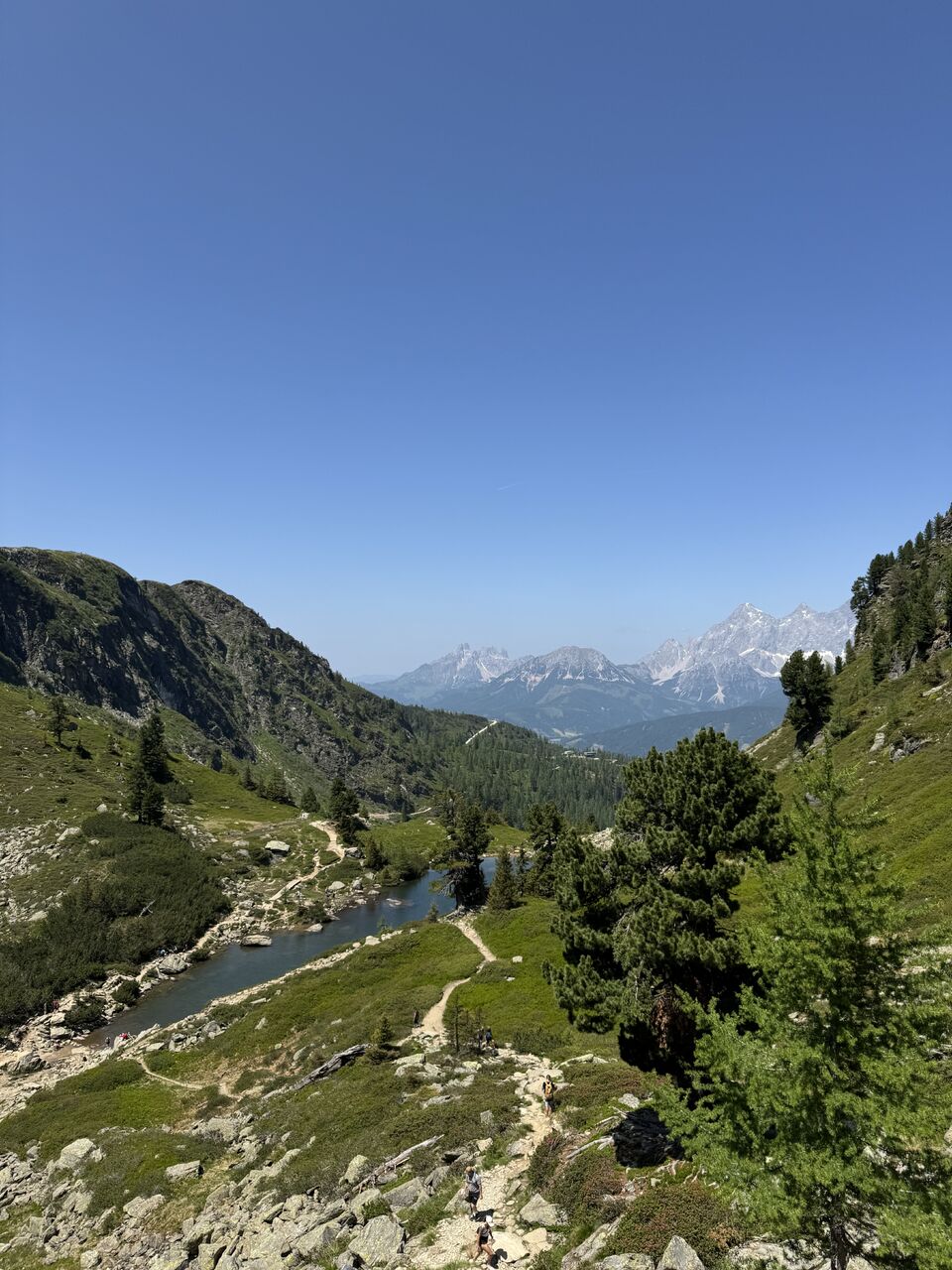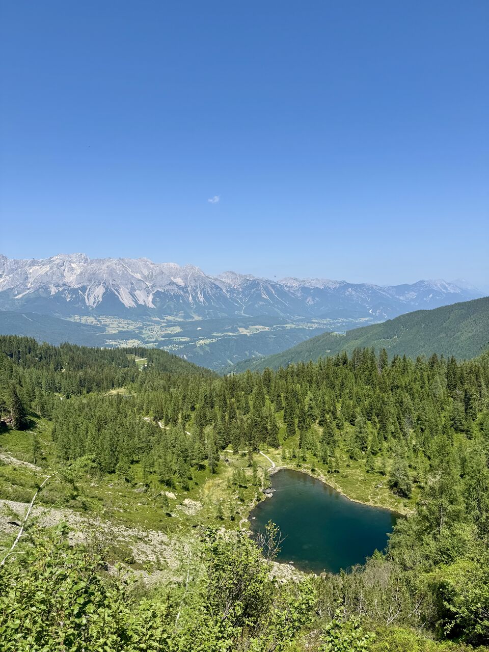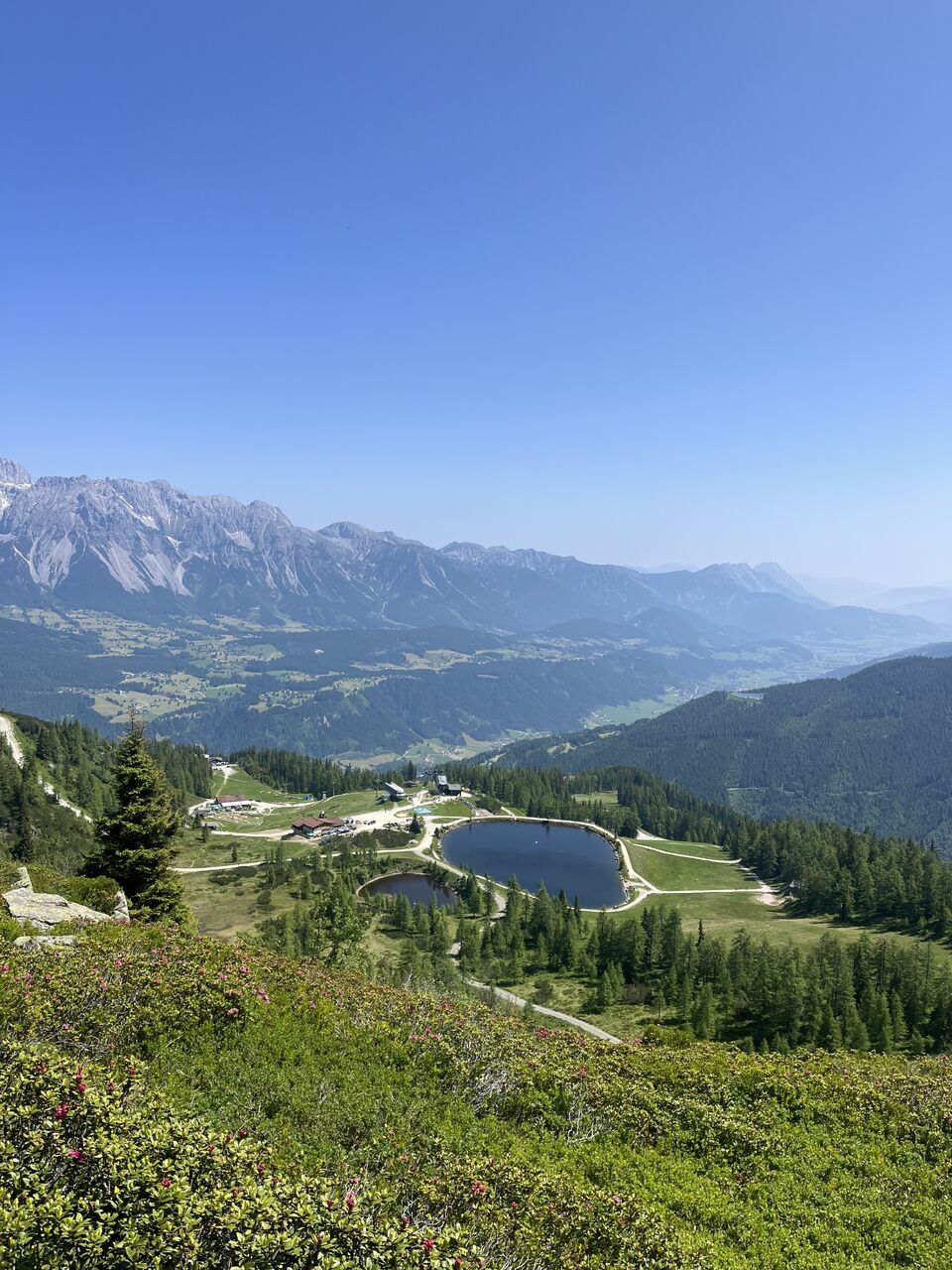 Naše nezapomenutelná túra začíná u horní stanice lanovky Reiteralm (Preunegg Jet), kam jsme se pohodlně vyvezli bez nutnosti kupovat lístek díky naší Sommercard – chytrý tip pro vaši dovolenou u nás! Jen pár kroků od lanovky nás přivítá první jezero Reiteralmsee.